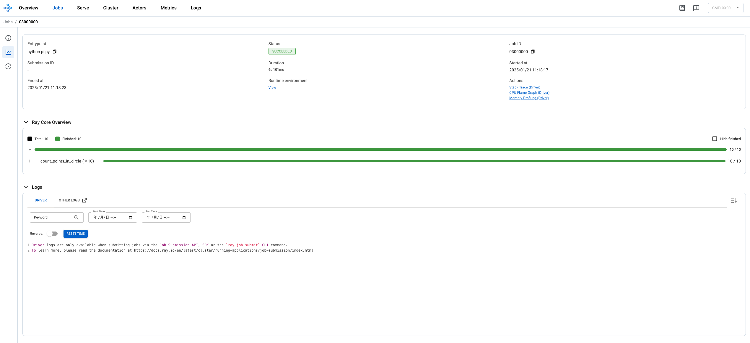 可以在http://127.0.0.1:8265查看Ray控制台。