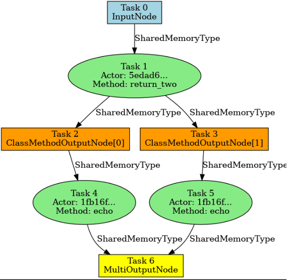 a = Actor.remote(0) b = Actor.remote(0) single_fetch = True with InputNode() as i: o1, o2 = a.return_two.bind(i) o3 = b.echo.bind(o1) o4 = b.echo.bind(o2) dag = MultiOutputNode([o3, o4])